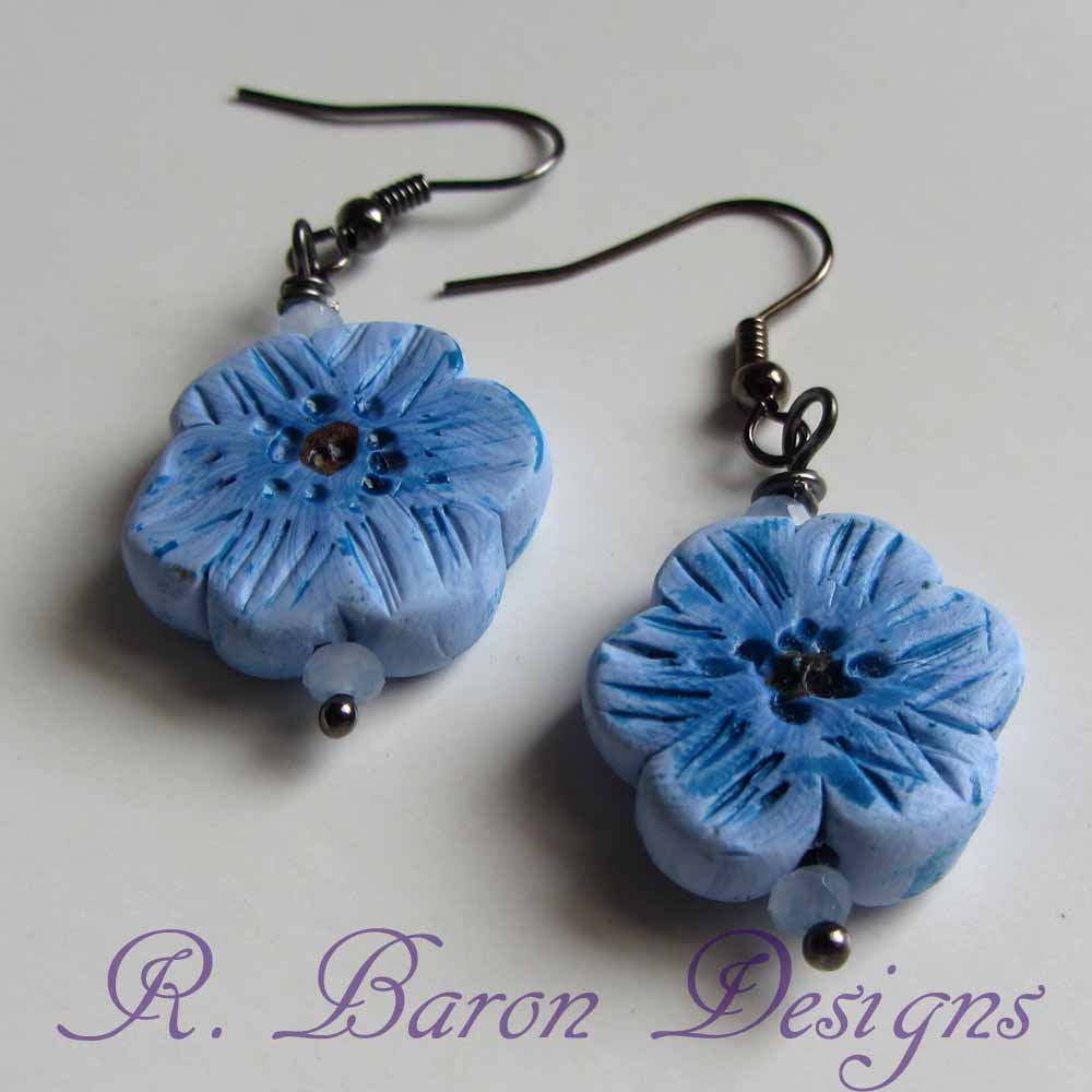 Too Aquarius! My first pair of earrings feature her blue polymer clay flower beads. They are stunning, and I can't believe they are clay!